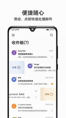 2、创新的手势操作体系,左滑标记重要邮件,右滑快速归档,长按批量处理,配合语音指令操作,工作效率提升300%。