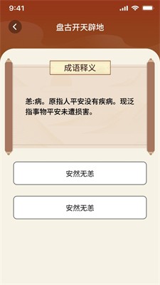 3、即时反馈机制在每道题目完成后提供典故出处、使用场景等拓展内容,构建完整的成语认知体系。