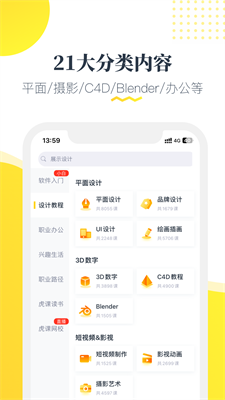 3、建立22大设计细分领域课程库,包含UI界面设计、商业摄影后期、字体创意设计等专业方向,所有课程均配备配套设计素材与工程文件,实现理论学习与实操训练同步推进。