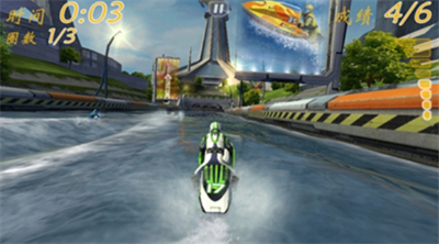 1、动态水域系统打造真实浪涌效果,每圈赛道都会因选手操作产生实时水流变化