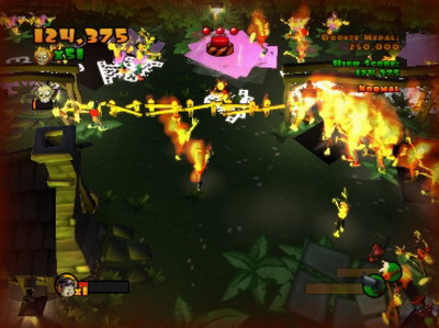 六大主题场景构建层次分明的进阶体系,每个场景包含自由模式、计时模式、守卫模式等四种玩法。独创的武器组合系统可激活场景机关,如暴雨减速、激光屏障等战场事件。超过15种主副武器形成攻防体系,从基础棒球棍到科幻脑波枪均拥有专属打击反馈。