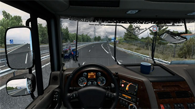 @狂飙老司机:后视镜里的夕阳美到窒息,雨刷器的节奏和真实卡车一模一样,拉货时听着电台音乐特别治愈