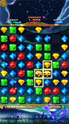 1、通过智能触控实现宝石位置互换,匹配三个及以上同色宝石即可触发消除机制