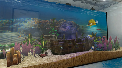 定制化水族箱支持模块化拼接,可自由搭配沉船遗迹或亚特兰蒂斯主题装饰