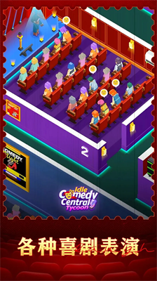 放置喜剧中心大亨免费中文版将带领玩家体验独特的剧场经营之旅。游戏以明快的卡通画风呈现,通过轻松放置的玩法构建完整的喜剧产业链。玩家需要精心策划演出内容,通过升级剧场设施与招募喜剧人才,打造笑声不断的娱乐王国。