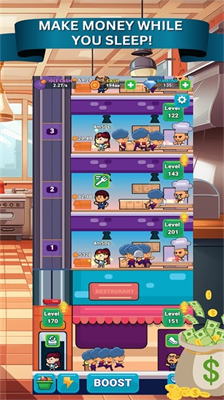 2、角色系统丰富多样,每位员工拥有独特技能,合理搭配可提升服务效率,加速餐厅运营收益。