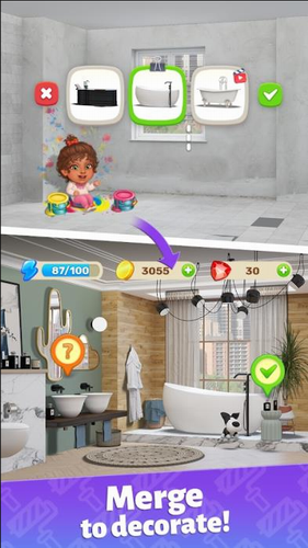 创意家居改造模拟是一款融合建造与合成元素的休闲手游,通过独特的3D卡通呈现方式,将空间设计与趣味消除巧妙结合。游戏采用明亮清新的美术风格,从墙面粉刷到家具搭配,每个细节都经过精心打磨,让玩家在改造破旧房屋的过程中感受治愈时光。