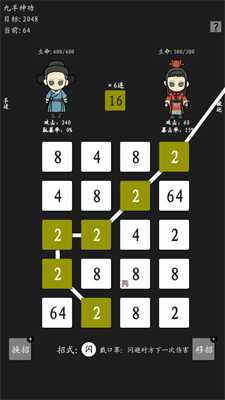 1、九宫格战斗模式融合回合制策略,数字合成决定招式强度