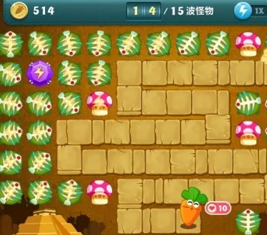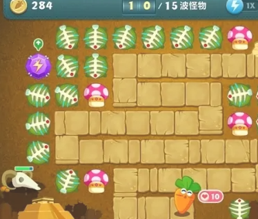 保卫萝卜挑战模式35关金萝卜通关技巧作为挑战模式的终极关卡,本关通过合理布局即可轻松斩获金萝卜。初始配置的四座炮塔需全部拆除换取资金,核心策略在于构建减速体系与火力覆盖,蘑菇作为减速主力兼具金币增益效果,配合鱼刺形成完美攻防链。