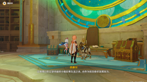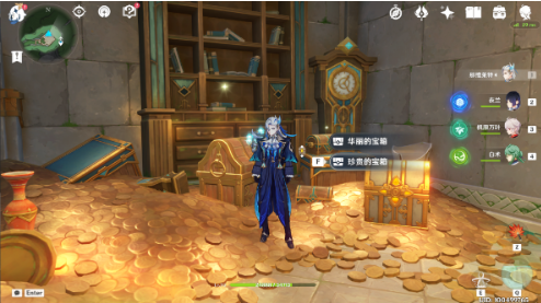 通过枫丹动能工程科学院的传送锚点向东南方移动,在解密开启的密室中需要应对两波遗迹机兵。建议携带护盾角色对抗其高频攻击,成功清剿后开启场地中央的鎏金宝箱可获得第三枚材料。