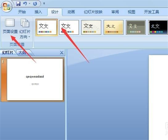 2、在操作界面顶部导航栏选择"设计"功能模块,定位右侧工具栏中的"幻灯片大小"选项。部分版本软件可能将该功能整合至"页面布局"或"文件-页面设置"路径,用户可根据实际界面布局进行选择。