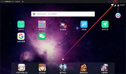 1、启动计算机中的夜神模拟器客户端,在软件主界面右上方定位到齿轮形状的【系统设置】入口。这个控制中枢位于界面显眼位置,方便用户快速访问核心配置选项。