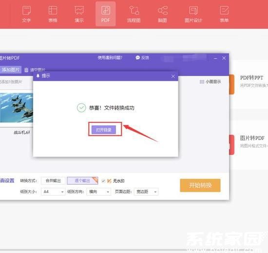 转换完成后需指定文件保存位置,建议建立专用文件夹进行分类管理。输出完成提示窗口包含打开目录快捷入口,用户可立即查看生成文档。最终生成的PDF文件将完整保留原始图像的分辨率和色彩信息。