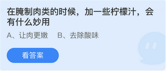 庄园小课堂7月12日最新题目解析已成为众多玩家关注的焦点,这款寓教于乐的知识问答游戏持续为用户带来趣味体验。本次题目聚焦生活常识与野外安全知识,针对腌制肉类添加柠檬汁的作用以及野外果实辨识技巧两大核心问题展开探讨,以下将为您深度剖析相关知识点。