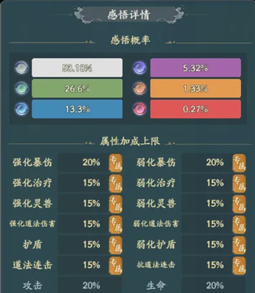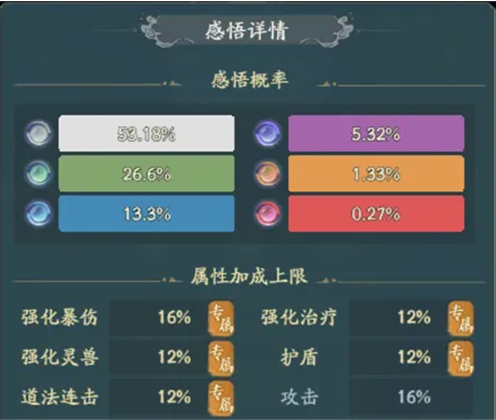 作为修真根基的五行体系,涵盖金木水火土五大基础属性。每项法则需完成200次参悟方可激活全部三个铭文槽位,累计消耗10000枚悟道石完成整套系统构建。属性强化建议优先选择灵兽增幅效果,该属性适配攻守两类灵宠,具有最高泛用性。若遇红色品质攻击加成或治疗强化词条亦可保留,其余次级属性收益较低。