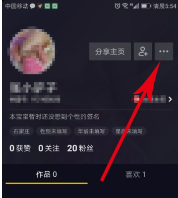 1. 定位个人页右上角由三个点组成的扩展菜单按钮(具体位置参考图示箭头标注)