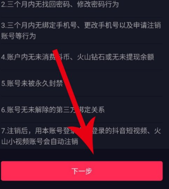 1. 系统将展示7项注销前提条件,包括无未结清款项、无进行中投诉等