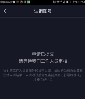 1. 完成验证后系统将生成注销工单,进入5-10个工作日的审核期