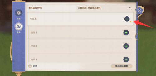 1、进入洞天编辑界面后,玩家可将当前场景布局保存为模板,系统自动生成8位共享编码