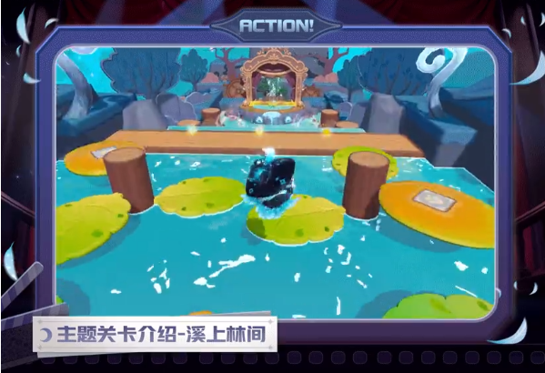 竞速关卡【溪上林间】打造出迷雾笼罩的水域场景。玩家需操控蛋仔在浮木与荷叶间穿梭,注意潜伏在水下的移动陷阱,巧妙利用弹跳装置实现快速位移。