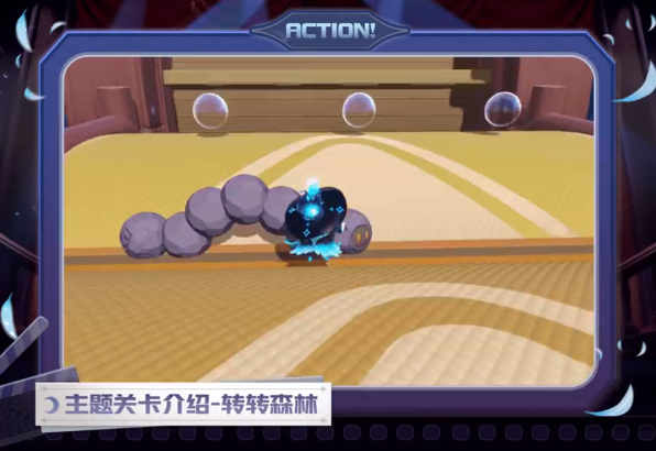 【转转森林】通过动态旋转平台考验玩家平衡能力。场景内设置了多组联动转盘,蛋仔们需要预判转轴运动轨迹,在持续变向中保持稳定前进。
