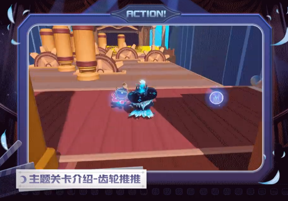 剧院后台的【齿轮推推】采用立体机关设计。巨型啮合齿轮与升降平台构成精密传动系统,玩家需把握齿轮间隙的移动规律,在机械运转间隙寻找突破路径。
