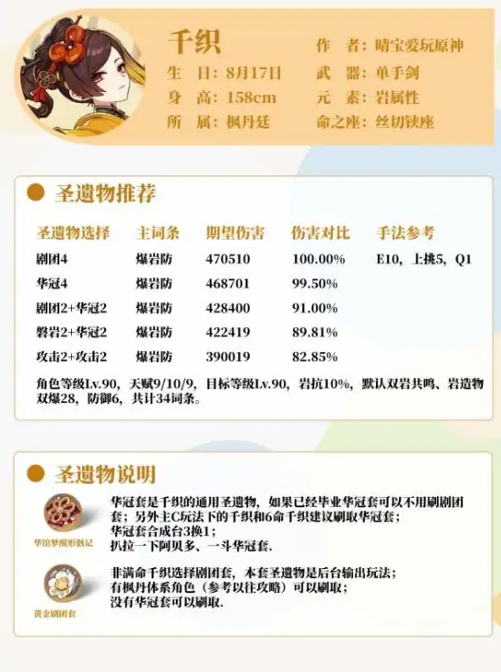 角色定位:建议优先培养至90级以获取防御属性最大化收益。推荐双暴比例保持75%暴击率与200%暴击伤害基准线,防御力建议堆叠至2400点以上。华冠套可提升主C输出表现,剧团套则更适合速切副C玩法,两者实际伤害差距约在3%以内。
