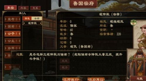 当君主统治期间未明确指定继承人时,存在触发权力真空危机的潜在风险。通过规范化的立储流程,不仅能增强政权合法性指数,还可显著提升国家稳定系数。建议玩家在政权交替前完成继承人指定工作,具体操作需前往都城行政界面,通过宫廷管理系统查阅王室成员档案,在子嗣信息面板中筛选资质优秀的继承人进行册立。需特别注意,变更已确立的储君人选将引发朝堂动荡,导致各派系支持率波动。