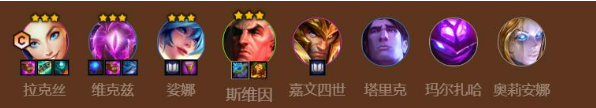 完整阵容配置:拉克丝/维克兹/娑娜/斯维因/嘉文四世/塔里克/玛尔扎哈/奥莉安娜