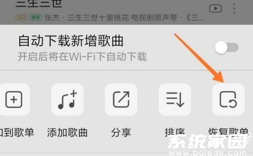 5、在弹出菜单中选择「恢复歌单」选项,系统将显示最近30天内的所有变更记录