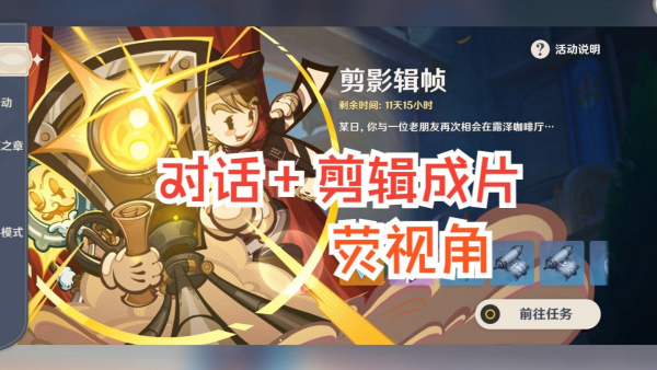原神5.4版本推出的剪影辑帧活动现已正式上线,本次创意玩法让旅行者化身广告导演,通过精心挑选镜头素材完成影视创作。活动不仅考验玩家对镜头语言的把控能力,更能通过趣味互动获取丰厚资源,本文将详细解析活动机制与全关卡通关技巧。