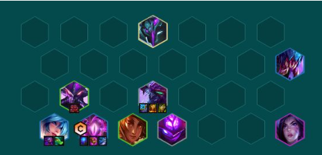 前排由峡谷先锋单独承担主要伤害,娑娜需根据战局调整站位。当前版本中该英雄技能无法覆盖左侧单位,建议初始阶段置于角落,中期可将两位术士单位作为站位支点,其余输出单位分布于第三、四排形成梯次火力网。