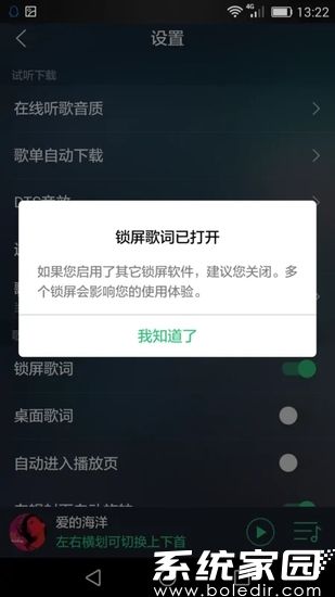 6、当遇到歌词面板锁定情况时,下拉通知中心点击播放控件栏底部的「点此解锁」提示。部分机型需在「辅助功能」中开启悬浮窗交互权限,确保操作指令的有效响应。