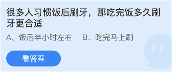 首题聚焦口腔健康领域:题目提出「餐后多长时间进行牙齿清洁更为科学」。正确答案明确显示为餐后三十分钟左右。现代医学研究表明,食物摄入后口腔环境会暂时呈现弱酸性,特别是摄入含糖或酸性食物后,牙釉质表层会出现轻微软化现象。此时立即使用牙刷摩擦可能加剧牙釉质损耗,建议先用温水充分漱口清除食物残渣,待口腔PH值恢复正常再进行系统清洁。