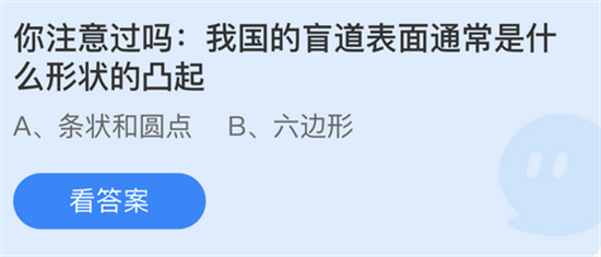 第二题关注城市无障碍建设:我国盲道表面常见的凸起形状是什么?正确答案是条状与圆点组合。这种特殊设计蕴含人文关怀,其中纵向条纹引导行进方向,圆形凸点则用于提示路口转折或障碍区域。