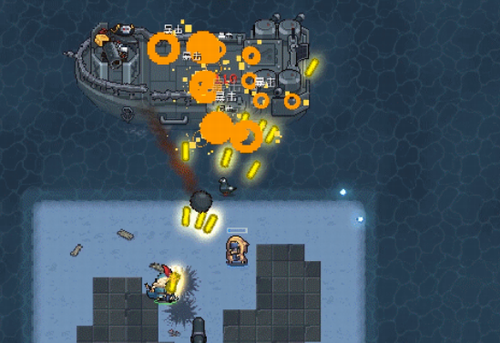 掌握舰体运动规律是制胜关键,当战舰后撤至海域边界时,其主炮会进入过载状态,此时甲板会出现短暂防护缺口。推荐使用激光类武器进行持续穿透打击,同时注意保留翻滚技能用于躲避密集弹幕。合理搭配冰冻控制与毒伤效果,可有效压制战舰的自我修复机制。
