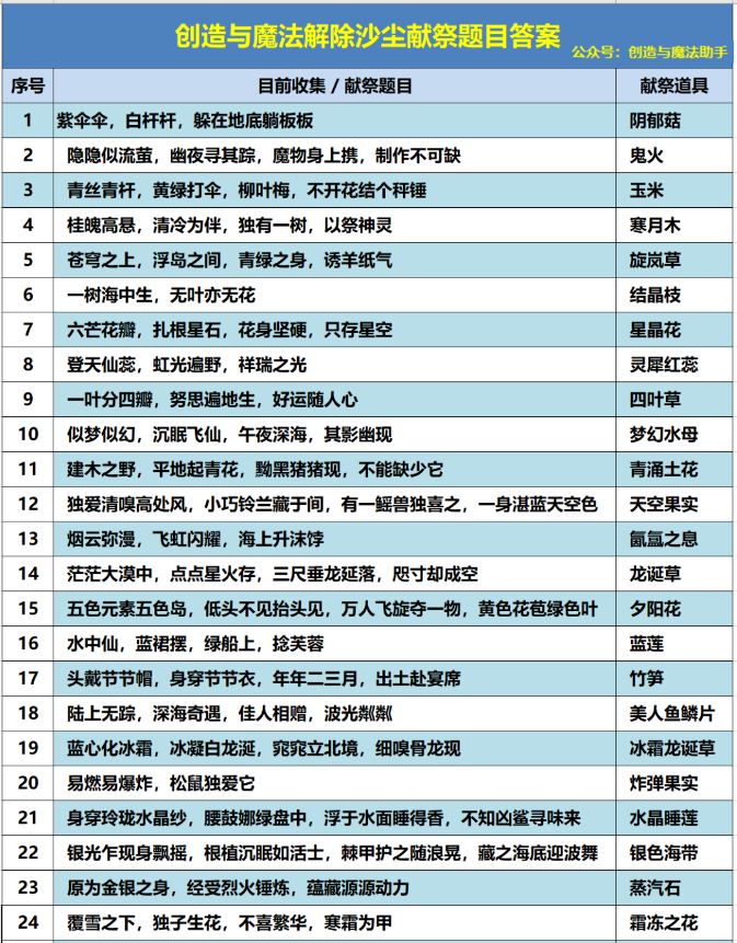 创造与魔法风沙献祭谜题如何破解?随着新地图上线,玩家们迎来了极具挑战性的解谜活动。本文将深度解析二十四道谜题的核心答案,助力冒险者快速完成献祭任务。通过精准的线索匹配与逻辑推理,助你轻松获取稀有资源与限定奖励。
