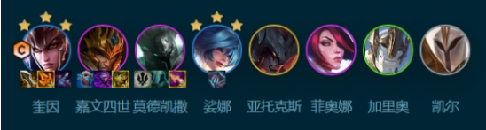 将奎因与莫德凯撒部署在娑娜同侧获取攻速加成,嘉文四世顶前吸收首波伤害。亚托克斯根据星级差异调整站位:一星单位配合皇子形成复活联动体系,二星单位后置保障持续输出。后期可替换为携带转职道具的卑尔维斯,光明火炮加持下具备更强清场能力。