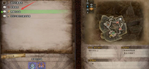 第二步定位关键任务「神赐的台地」。在六星级别任务列表中滑动查找,该任务通常标注有衣装强化标识。确认任务详情后点击接受,建议组队携带回复道具提升成功率。
