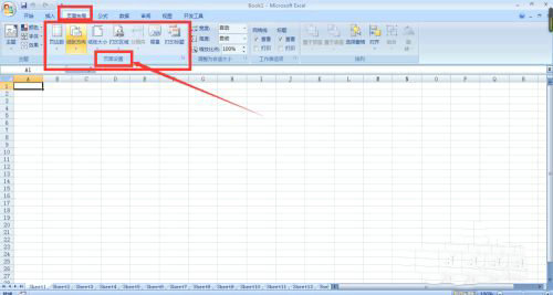 2、切换至页面布局工作面板,该区域集成了主题设置、页面缩放、工作表选项等重要功能组件。右侧的页面设置模块包含打印质量、纸张方向等参数调节选项。